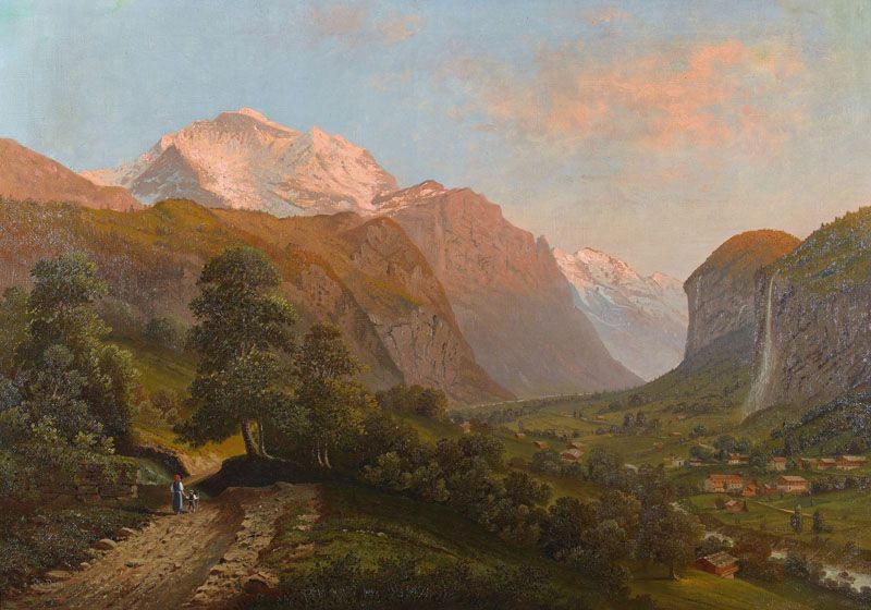 Lauterbrunnental mit der Jungfrau im Abendrot.