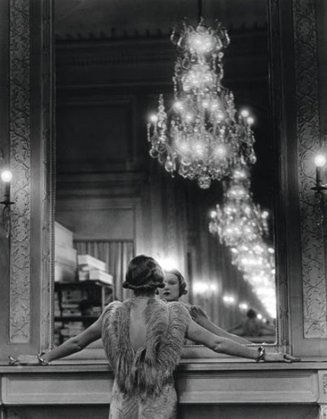 | Model Looking in the Mirror of Fashion Designer Molineux, Paris. | |