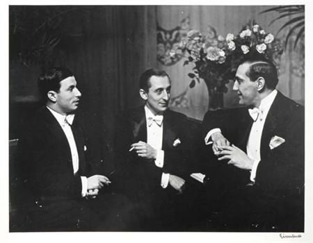 | Nathan Milstein (violin), Vladimir Horowitz (piano), Gregor Pitiagorsky (cello) before the concert in Berlin | |