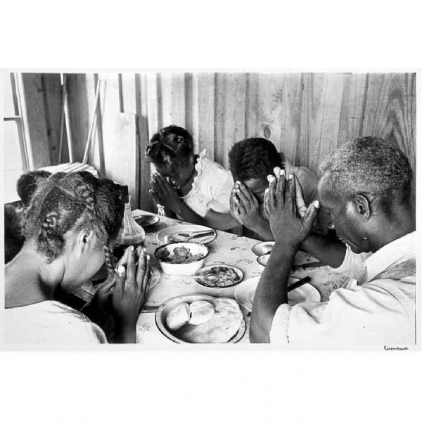 | Share cropper Lonnie Fair & family in Scott, Miss. saying grace at lunchtime... | |