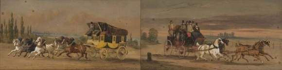 Scènes d'attelage deux aquarelles formant pendants