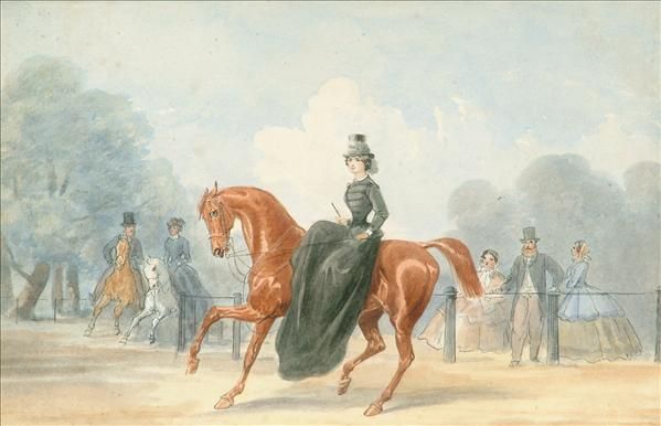 Views in Hyde Park: Two ladies in their carriage A young lady on horseback