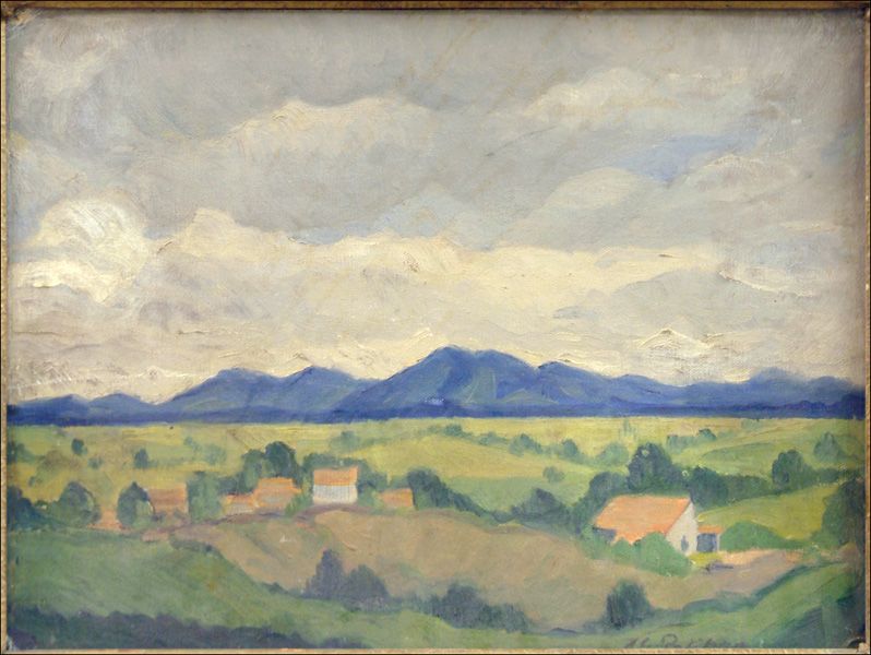 LANDSCAPE WITH MOUNTAINS AND HOUSES