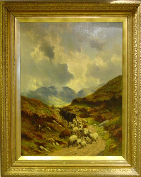 Landskap med fårhjord i förgrunden
