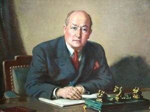 | Portrait of Edward Roydon Alltree, Master of the Worshipful Company of Glovers, seated half-length at a desk | |
