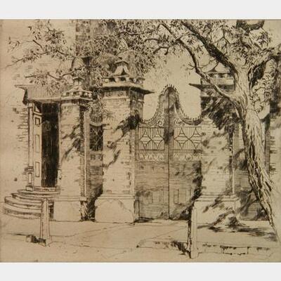 'The Old Smyth Gate, Charleston''- etching, 1927, signed in pencil with snail cypher. 7 5/8 x 8 7/8'' | |