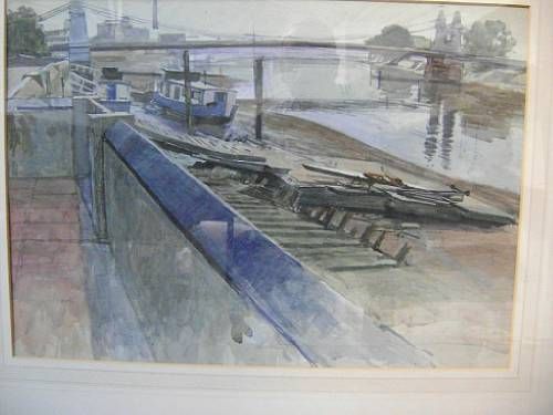 Pontoons Hammersmith, a houseboat on the Thames at low tide
