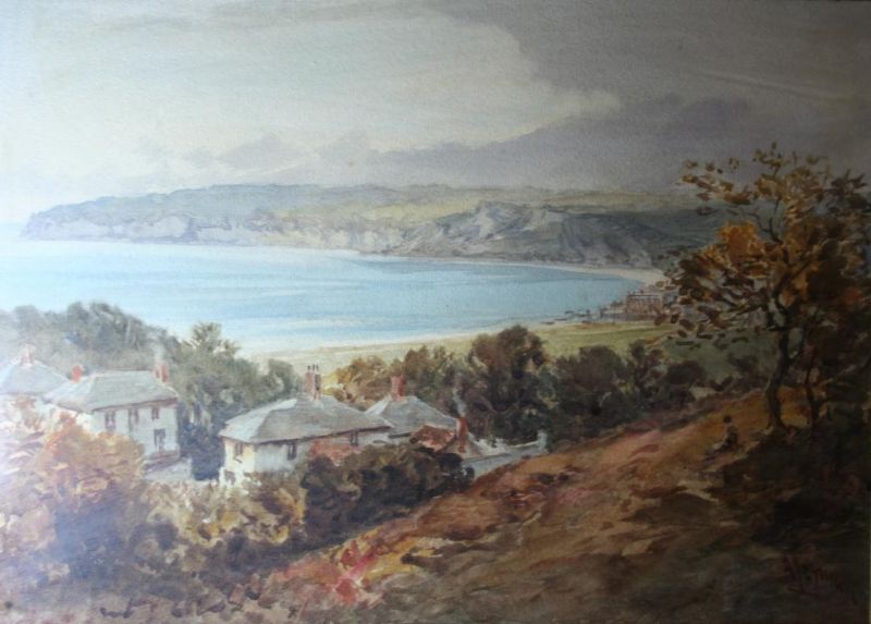 FIGURE NEAR COTTAGES; VIEW ACROSS A BAY