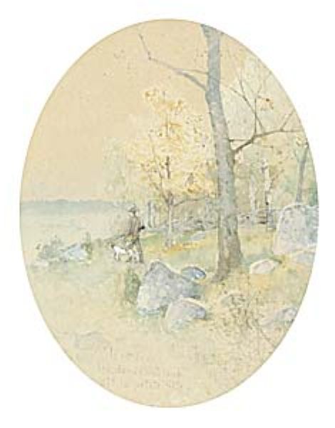 Höstlandskap med jägare och hund