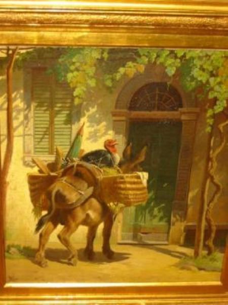 Italian Courtyard with Turkey on a Tethered Donkey