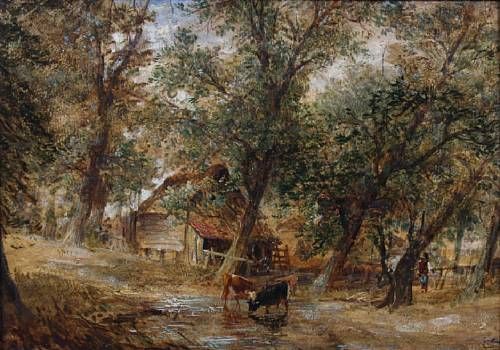 Cattle watering at a woodland pool