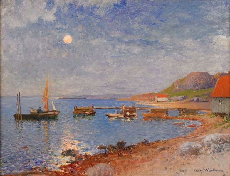 | Strandlandskap i månsken - motiv från Lysekil | |