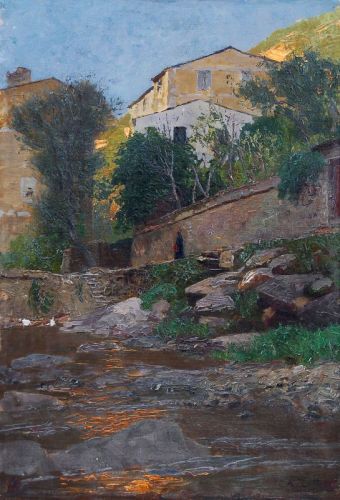 Häuser am Fluß bei Nervi.