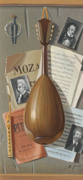 Musical Tromp L'oeil with Sheet Music and Composers Photographs
