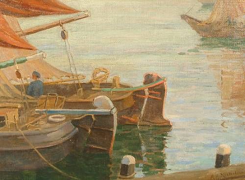 Moored boats in a harbour