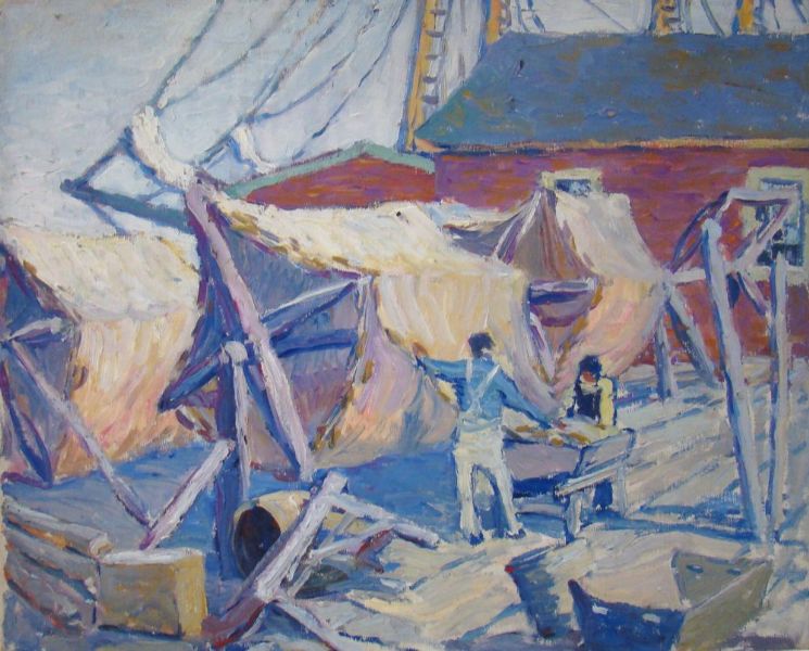 Drying sails.