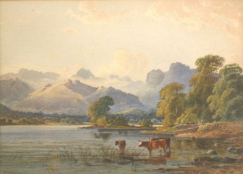 | Mountainous Landscape with Shepherds and Flock near a Lake, and Mountainous Landscape with Cows at the Edge of a Lake | |