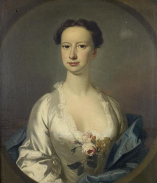 | Portrait of a lady, said to be Lettice Berridge, half-length, in a white satin dress, embellished with a rose corsage, within a | |