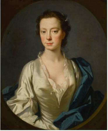 | PORTRAIT OF JEAN NISBET, LADY BANFF (D. 1790), HALF-LENGTH, WEARING A WHITE SILK DRESS AND BLUE WRAP | |