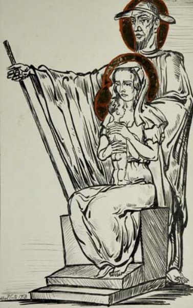 | Offset lithograph of a brush and ink drawing, with gold leaf and gouache additions, on cream wove paper | |
