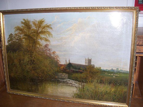 Tewkesbury Abbey from the South West/(with the river Swilgate in the foreground)