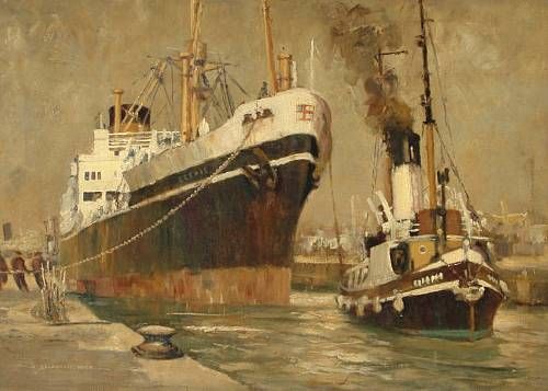 A tug pulling in a steam ship