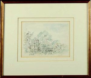 Pen and ink with colour wash