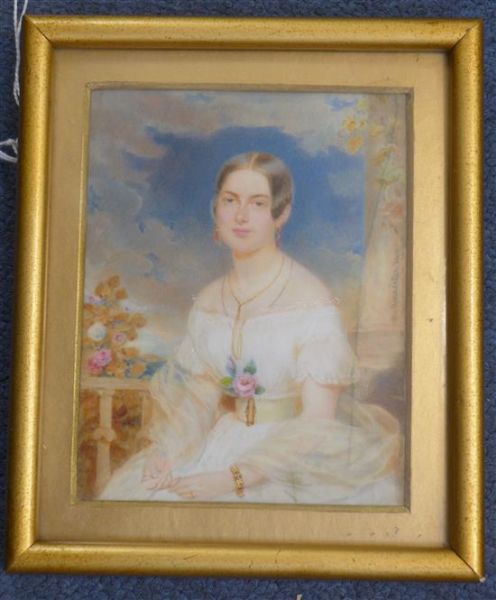 Miniature of a young lady seated on a balcony