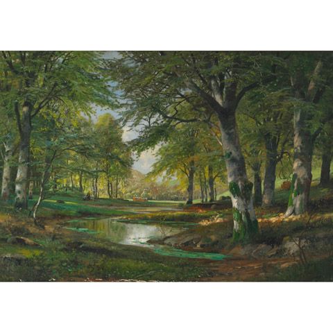 WOODLAND POOL (FIGURES AT A CAMP FIRE)