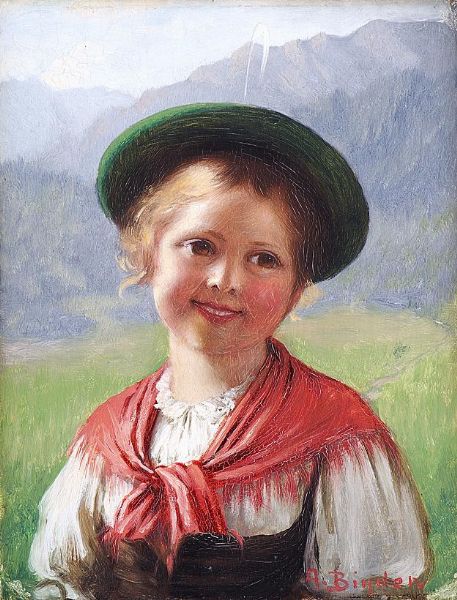Lachendes Dirndl mit grünem Filzhut und zarter Feder