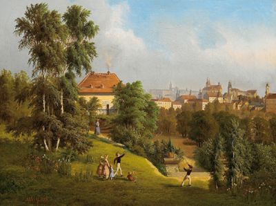 Childeren at Play, Prague in the Background