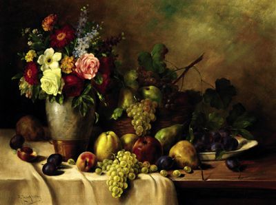Stillleben mit Blumen und Früchten