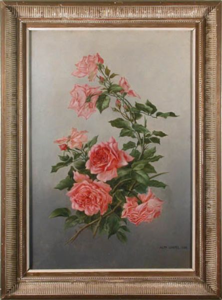 | Rosenzweig mit zahlreichen Blüten und Knospen vor changierendem Hintergrund | |