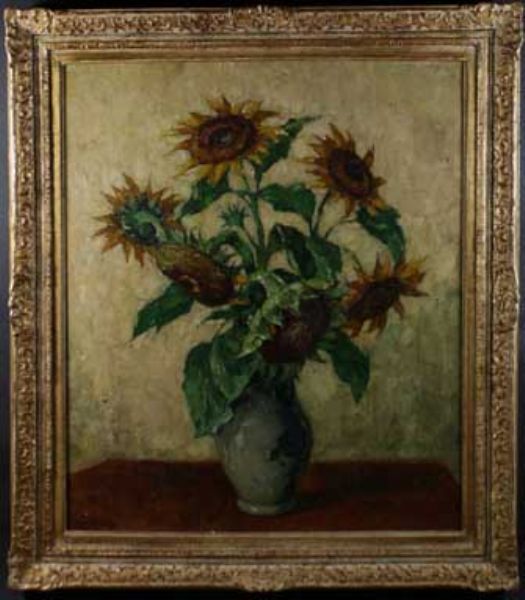 Still life of a Vase of Sunflowers
