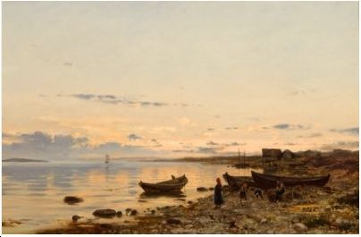 | Aftenstemning med ventende barn i fjæra, 1885 | |