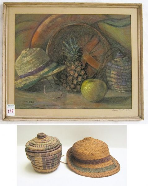 Still-life with fruit, hat and basket.