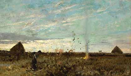 Acker mit Feuerstelle und einem sitzenden Hasen.