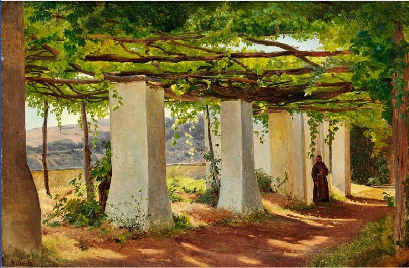 A monk in a pergola, afternoon light