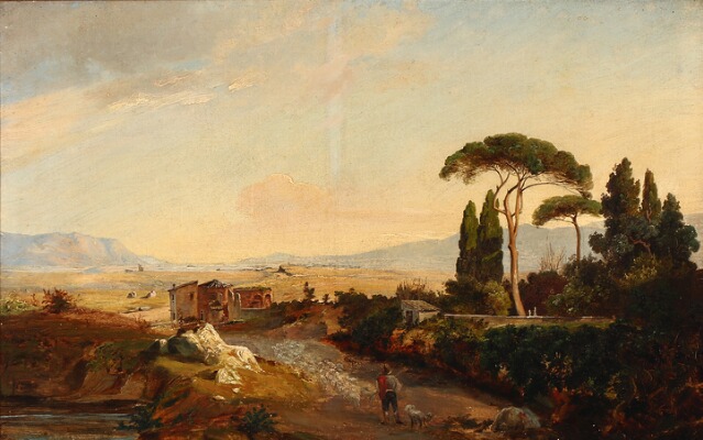 | Landscape from Italy with a shepherd driving forth the sheep | |
