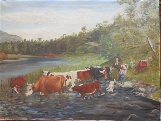 attle and figures in a Landscape