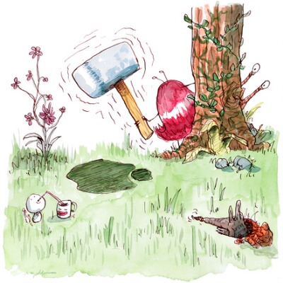 | Original drawing for “Tre fantastiske eventyr om Røv - verdens sødeste bagdel”. | |