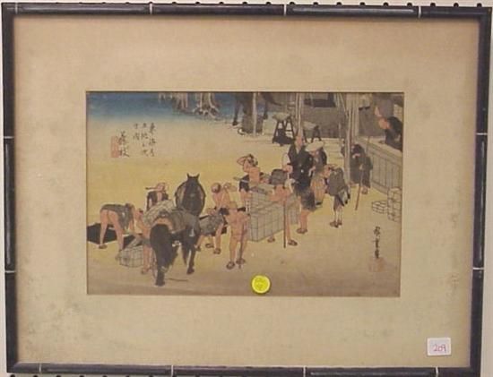 | Workers and horses transporting goods, oban size, some wear/toning | |