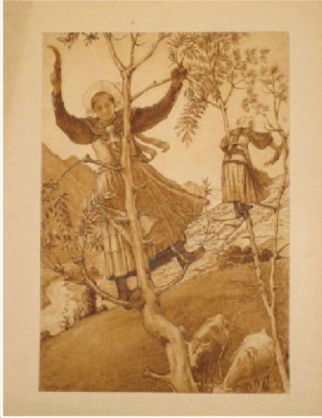 | Jeunes filles de Saint-Alban taillant les frênes Brou de noix | |