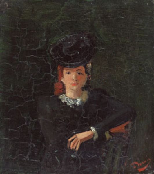 Junge Dame mit Tellerhut
