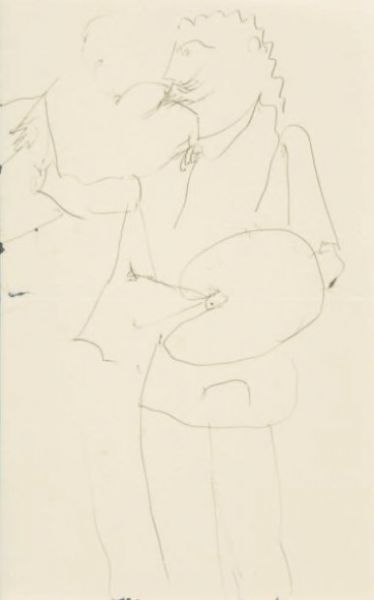Le peintre Dessin au stylo bille (trace de pli et d'insolation)