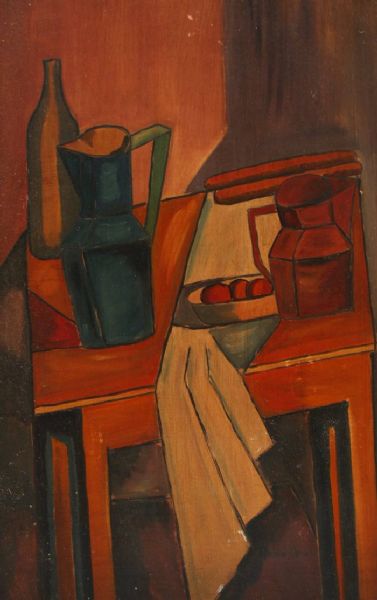 Stilleben mitt Früchten, Flasche und Krug