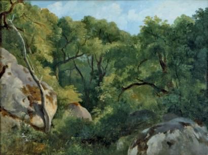 Paysage aux rochers dans la forêt de Fontainebleau