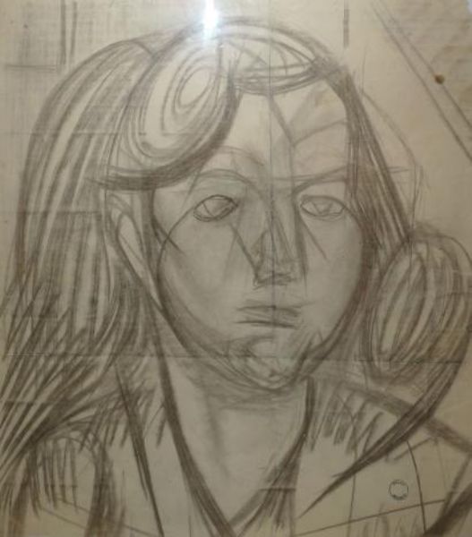 Tête féminine Fusain (traces de plis, accidents et taches)