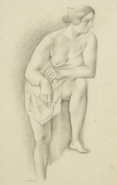 | Femme partiellement dénudée, prenant appui sur sa jambe gauche, vers 1925-1930. | |