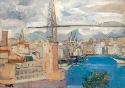 MARSEILLE, LA TOUR SAINT JEAN, LE VIEUX PORT ET LE PONT TRANSBORDEUR